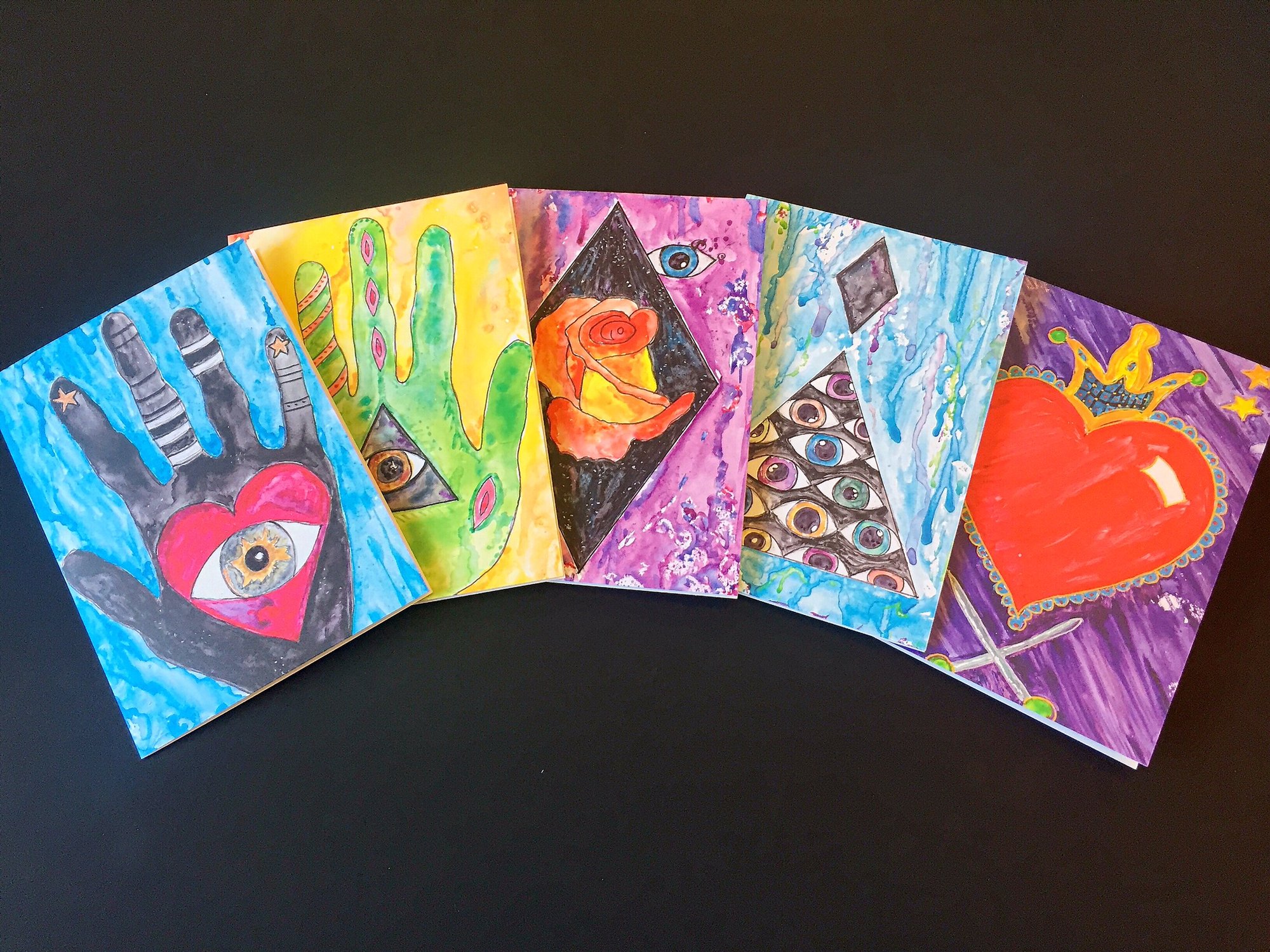Set of 5 high quality 5x7 blank greeting cards featuring paintings by Tina Lynn Ellis